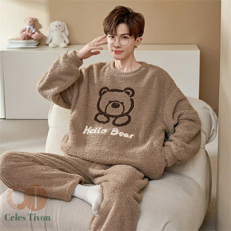 ルームウエア メンズ 冬用 パジャマ 長袖 暖かい 厚手 秋冬 新作 無地 上下セット 2点セット 部屋着 寝間着 大きいサイズ ナイトウエア