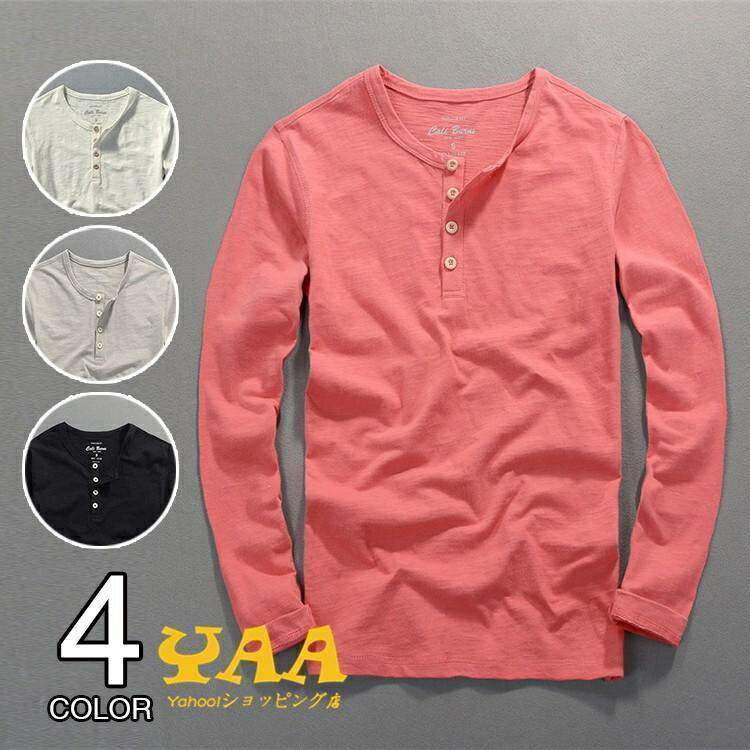 カットソー Tシャツ ボタン付き メンズ 長袖Tシャツ トップス 100%コットン