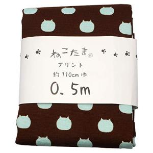 日吉商会 ねこたま オックス生地 50cmカットクロス チョコミント NTSC-1D 手芸・ハンドメイド用品