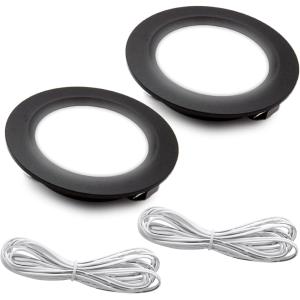 エスネット DC 12V 3W 小型 LED ダウン ライト ホワイト 黒枠 6500K 組立必要 外寸 68mm 厚さ(ホワイト2個)