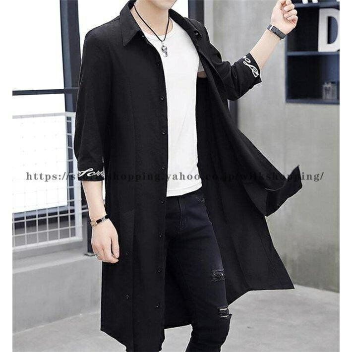 ロングシャツ メンズ シャツ ダンスウエア ロング丈 ホスト 春 夏 サマー カジュアル ミリタリー トップス きれいめ スリム 個性