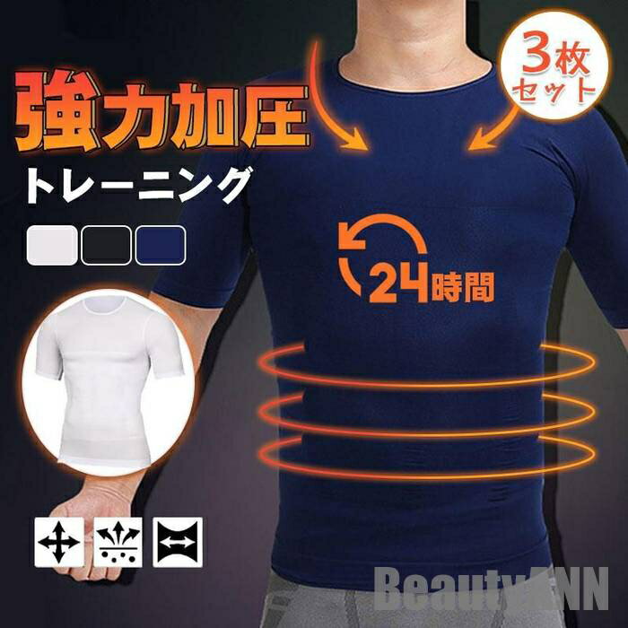 3枚セット 加圧 シャツ メンズ ダイエット 効果 半袖 着圧 インナー トップス コンプレッション Tシャツ 猫背 姿勢補正 補正下着 プレゼント ギフト 新生活