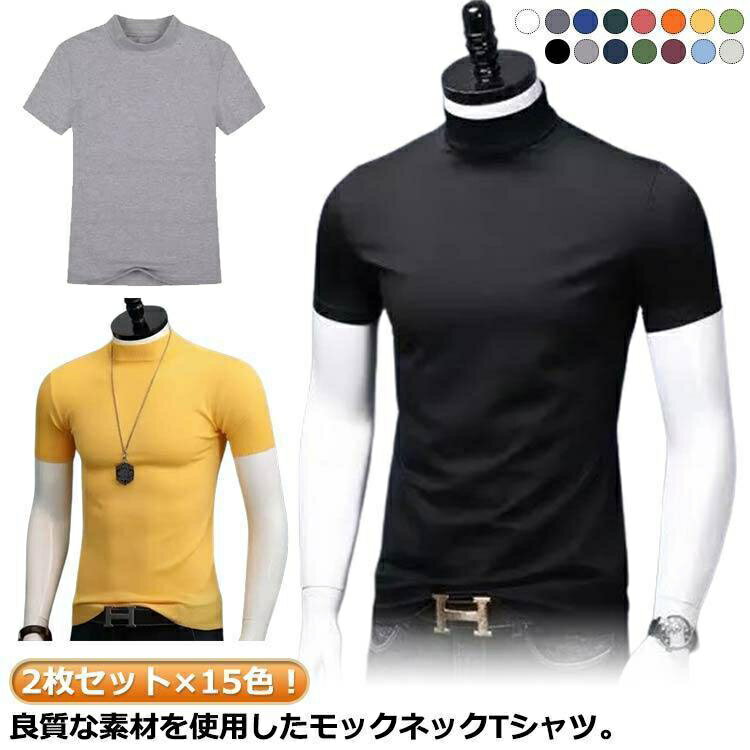 無地 カジュアル 2枚セット×15色!トップス ティーシャツ メンズ 無地tシャツ カットソー ハイネックtシャツ ハイネック 半袖 Tシャツ 半袖