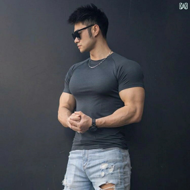 tシャツ マッチョ メンズ カジュアル ストレッチ 半袖 春夏 タイトフィット トレーニング 筋トレ ジム トップス 速乾性 通気性 伸縮性 シンプル 無地 グレー 白 黒 おしゃれ