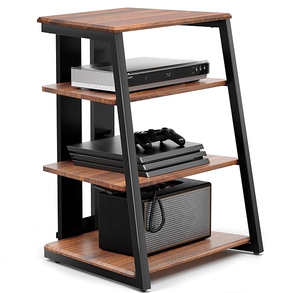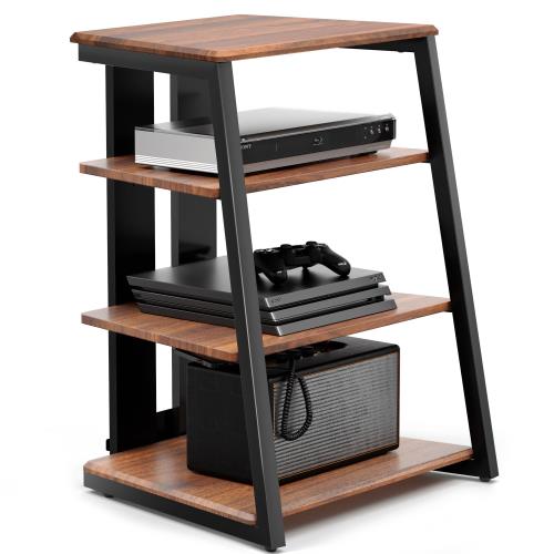 FITUEYES DESIGN オーディオラック 小型テレビ台 インテリア 台形 木目調仕上棚板 スチール製フレーム 裏面配線 ピッチ調整可 ウォールナット+ブラック エッフェルシリーズ F07F4061L