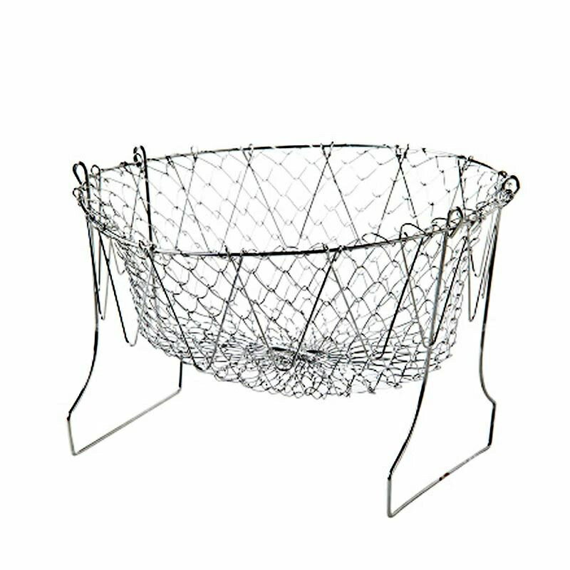 【送料無料】揚げざる 折り畳み 揚げ物 鍋 油切り 天ぷら鍋 揚げ物 かご 揚げ網 バスケット フライバスケット ザル ステンレス揚げザル コンパクト フライヤー