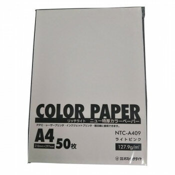 オストリッチダイヤ リッチライト ニュー特厚カラーペーパー A4 ライトピンク 50枚パック入 NTC-A409【お寄せ品、返品キャンセル不可。欠品終売時連絡あり】