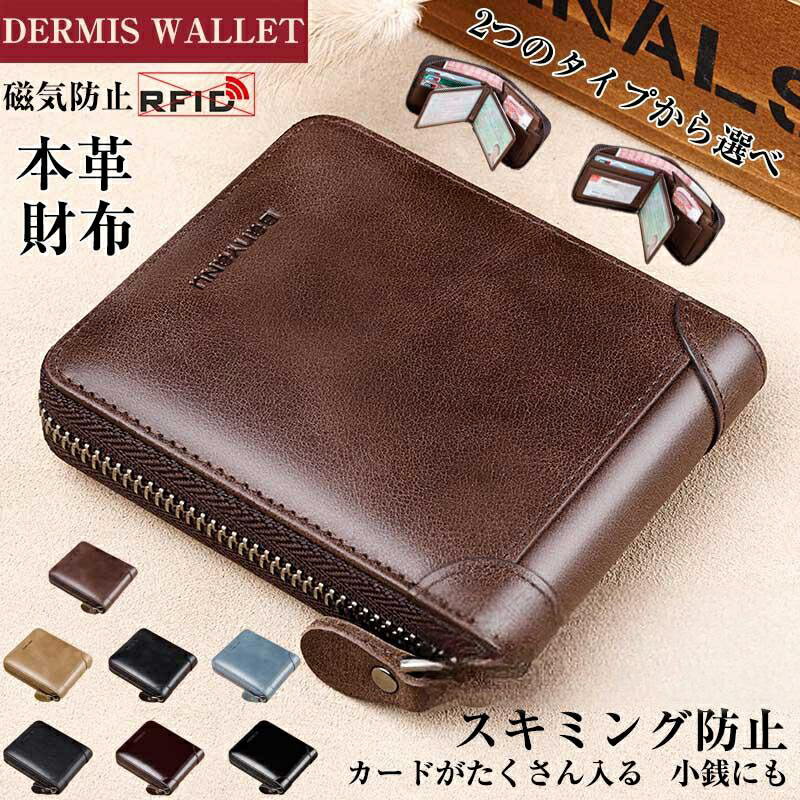 財布 メンズ 2つ折り カードがたくさん入る スキミング防止 小さい財布 コンパクト 小銭入れ付きカードケース 二つ折り財布 ファスナー 大容量 多機能 革 本革 牛革 ファスナー付き 男性 財布 7色展開 父の日 敬老の日 誕プレ 父の日 誕生日 バースデー プレゼント