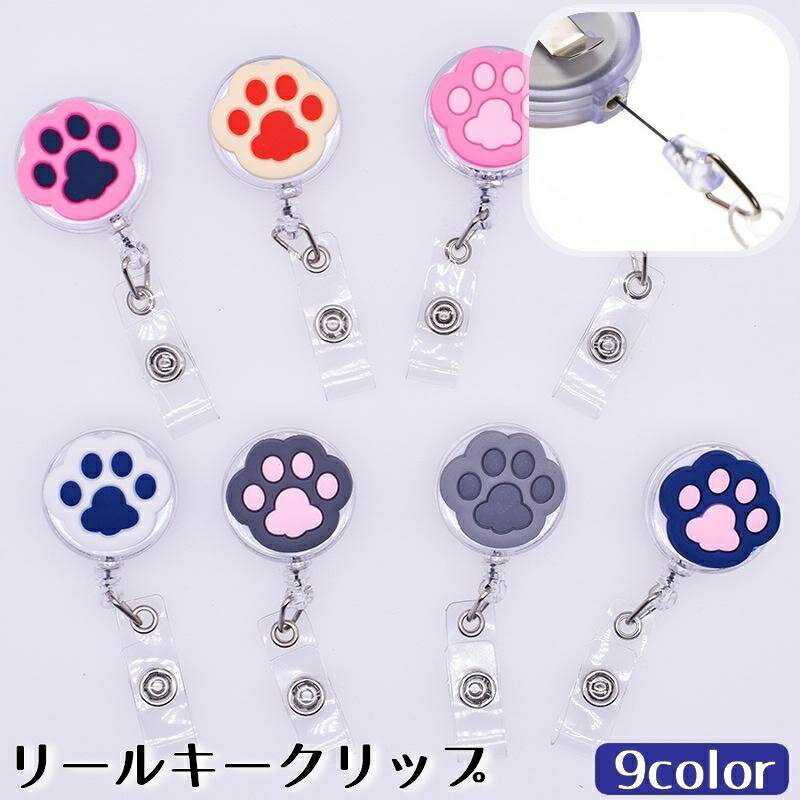 リールキークリップ 名札リール 伸縮 カードリール バンドタイプ リールキーホルダー 伸びる 肉球モチーフ 犬 猫 イヌ ネコ IDカード パスケース