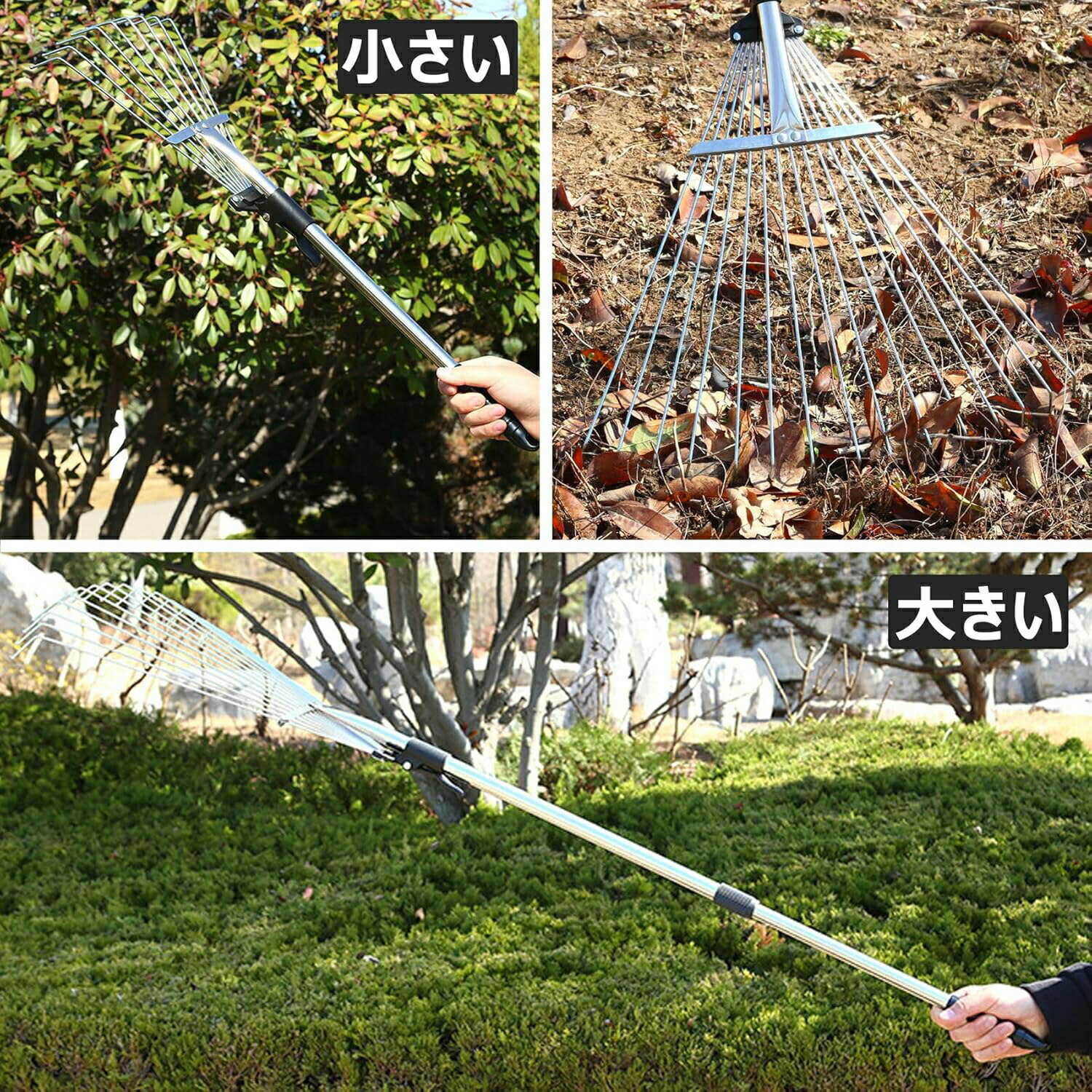 熊手 レーキ 伸縮式ガーデンレーキ 9爪 15爪 落葉掃き 芝生レーキ ガーデンクリーナー 長さ調節可能 ヘッド幅調節可能 園芸レーキ 雑草レーキ 落葉 清掃 草刈り 草刈 くさかり 小型 草取り 小枝 草 収集 軽量 簡単 コンパクト 庭 家庭菜園 玄関前 掃除 農業用具