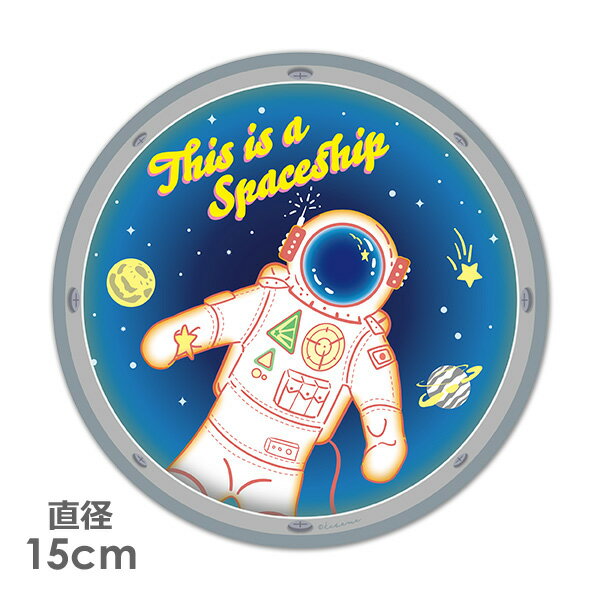 【お買い物マラソン期間5%OFFクーポン&ポイントUP】【マグネットステッカー】宇宙船の窓から見える宇宙飛行士【This is a Spaceship】丸型15cm車マグネットステッカー ゆうパケット対応210円〜