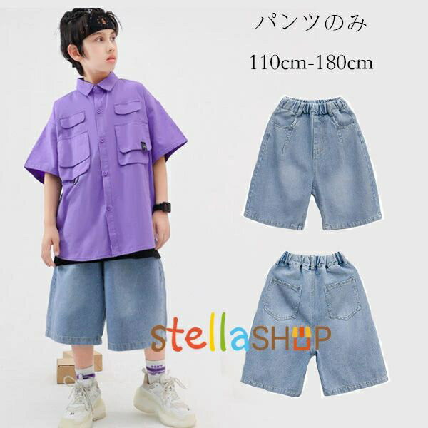 ダンス衣装 ダンスパンツ 男の子 女の子 デニム ハーフパンツ キッズ hiphop K-pop 舞台 団体服 男女兼用 子供ダンス ショートパンツ ゆったり 原宿系 演出服 応援団 運動着 ジュニア服 夏服 夏着 ダンスウェア ヒップホップ 110 120 130 140 150 160 170 180