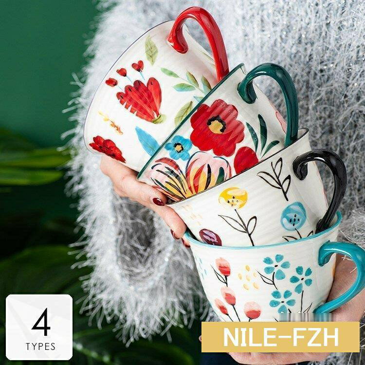 キッチン用品 食器 お茶用品 マグカップ ティーカップ コーヒーカップ 花柄 カップ カラフル 来客用 ホワイト ギフト