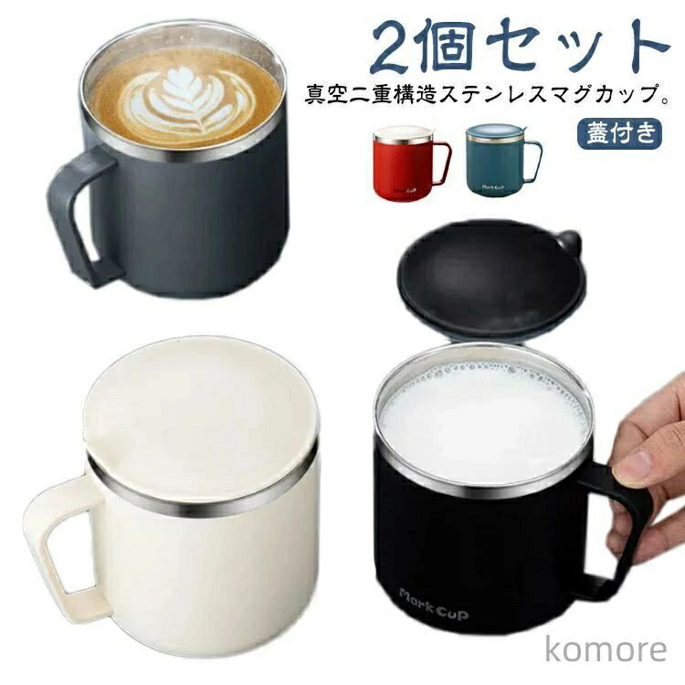 400ml ステンレスマグ 2個セット ステンレス マグカップ 蓋付き 保冷 保温 タンブラー 持ち手 コーヒーカップ コーヒーマグ