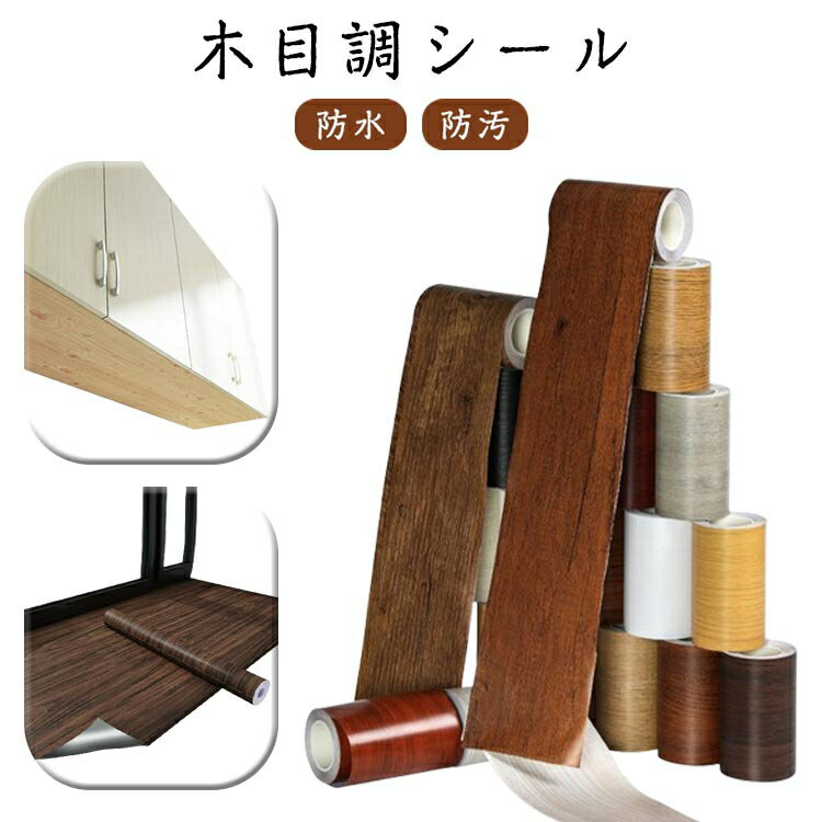 木目 木目調シール テープ 強い粘着力 貼るだけ 木目調テープ 木口テープ フローリング 防水 防カビ DIY 家具修理テープ 巾木 ウォールナット トイレ リメイクシート 防水 防油 防汚 家具の 補修テープ 床 窓枠 ドア枠 木目 リビング 玄関