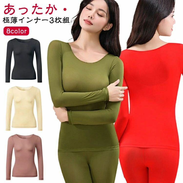 薄い 広い 長袖 発熱 3枚セット 黒 ブラック あったかインナー 保湿 ストッキング生地 インナー 薄手 あったかインナー インナーシャツ 保温 レディース 深あき 肌着 ストッキングインナー ベージュ 伸縮 大きいサイズ 軽い 暖かい 秋冬 防寒 フィット 伸縮性