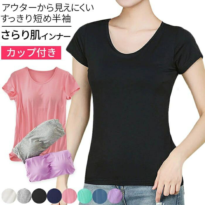 カップ付き 半袖インナー ブラトップ フレンチスリーブ パッド付 Tシャツ カットソー Tシャツブラ トップス 大きいサイズ 小さいサイズ ストレッチ 肌着 rr520