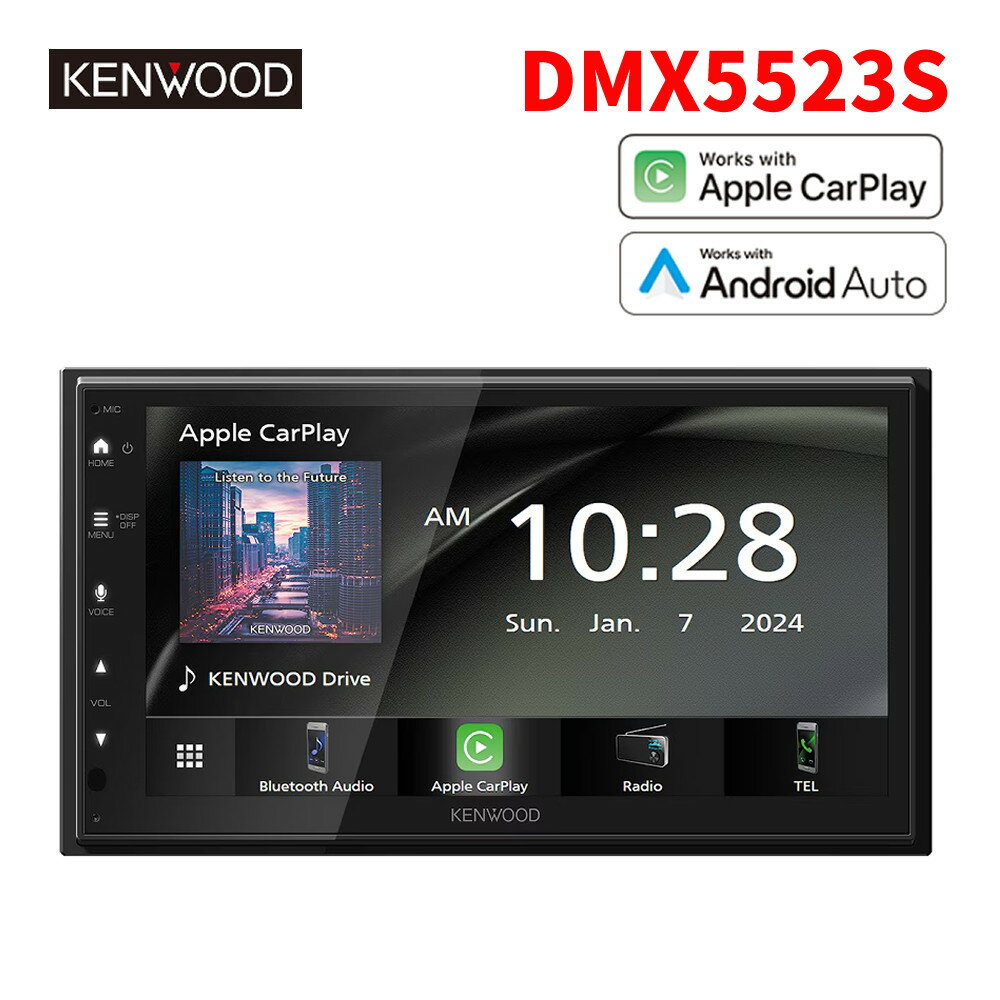 ケンウッド カーオーディオ ディスプレイオーディオ DMX5523S ワイヤレス Apple CarPlay Android Auto(TM) ワイヤレスミラーリング対応 WiFi Bluetooth ステアリングリモコン対応 高音質 高画質(ラッピング不可)(熨斗対応不可)