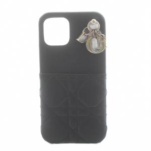 ディオール Dior カナージュステッチ iPhone12ケース レザー 黒 ブラック チャーム /KU ■OH レディース