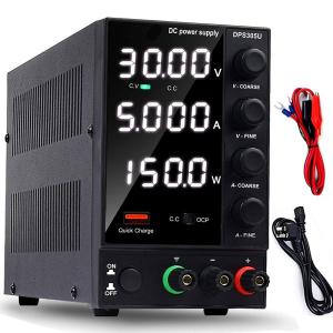可変直流安定化電源 DC 0-30V 0-5A 150W の短絡警報 4桁表示 LED 高精度のUSB急速充電