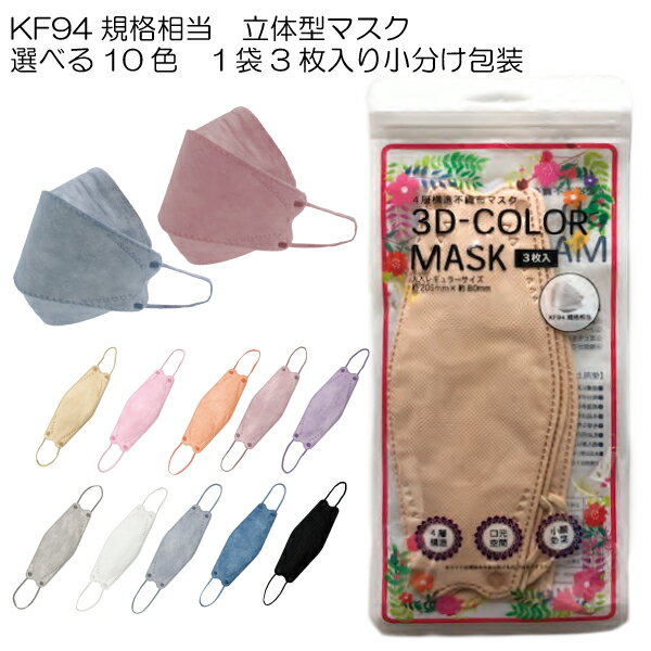 立体型 3D カラーマスク KF94規格 相当 選べる10色 24枚セット 3枚ずつの小分け包装