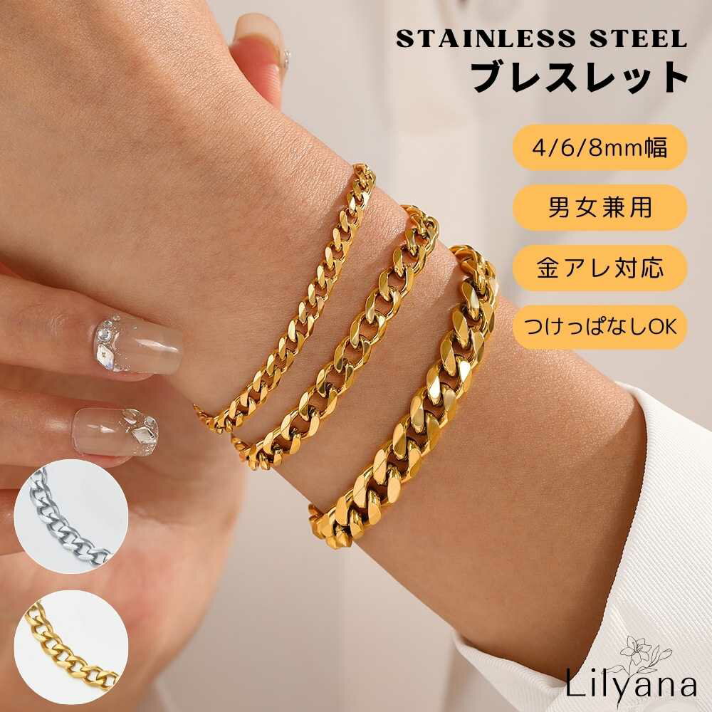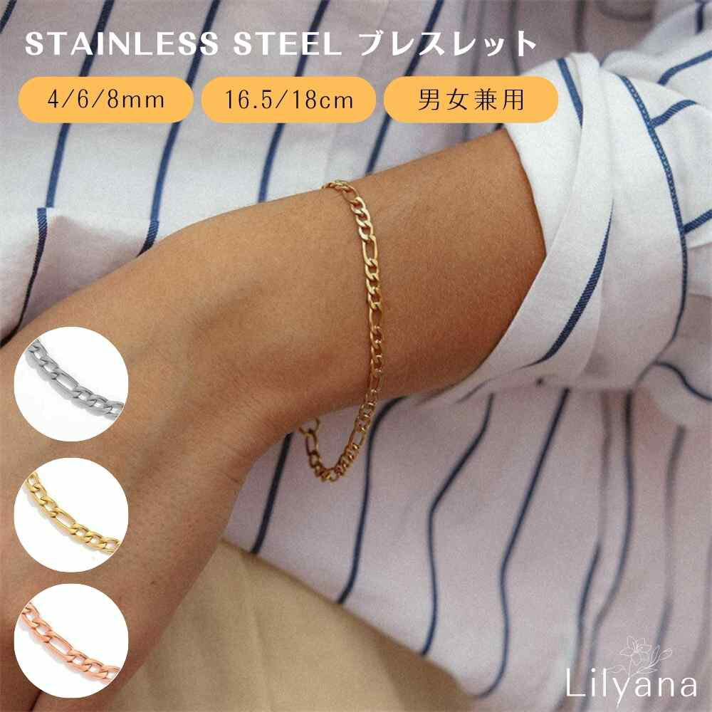 ブレスレット ステンレス デザインチェーン ゴールド シルバー ピンクゴールド 4mm 6mm 8mm 幅 16.5cm 18cm 全長 レディース メンズ 男女兼用 金属アレルギー 対応 サージカルステンレス カジュアル 仕事 パーティー デート ab1016