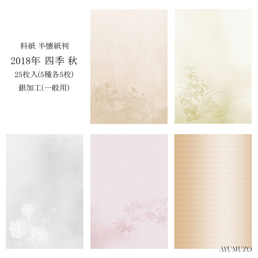 かな料紙 紙研 2018年 四季 秋 半懐紙判 銀加工(裏加工) 一般用 25枚入 ※半紙サイズではございません