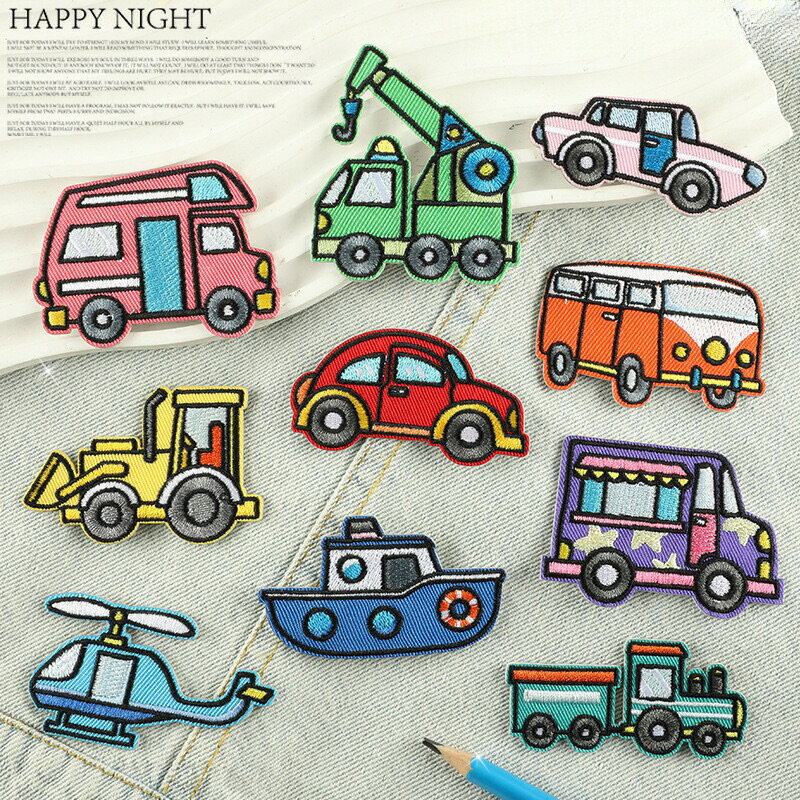 10枚セット シールタイプ 乗り物ワッペン 車 アップリケ 男の子 リメイク 可愛い 雑貨 ハンドメイド 入学準備 入園 学校 車 男の子