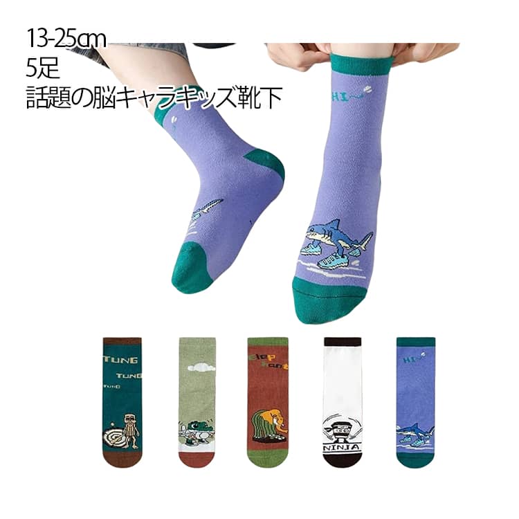イタリアンブレインロット 靴下 5足セット トゥントゥントゥンサフール 脳腐キャラ Italian brainrot TungTungTungSahur 子供 ソックス トララレロ・トララ 女の子 男の子 キッズ 靴下 面白い 小学生 春夏秋冬 新年 誕生日 プレゼント