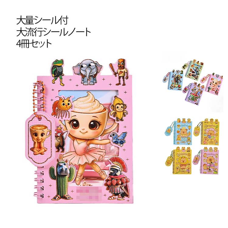 4冊セット シールノート イタリアンブレインロット ブレインロット シール ノート シール帳 ステッカー プレゼント 手帳 大量シール付 PETシール キャラクター シール メモノート 可愛い ステッカー 子供 DIY手帳 シール集め