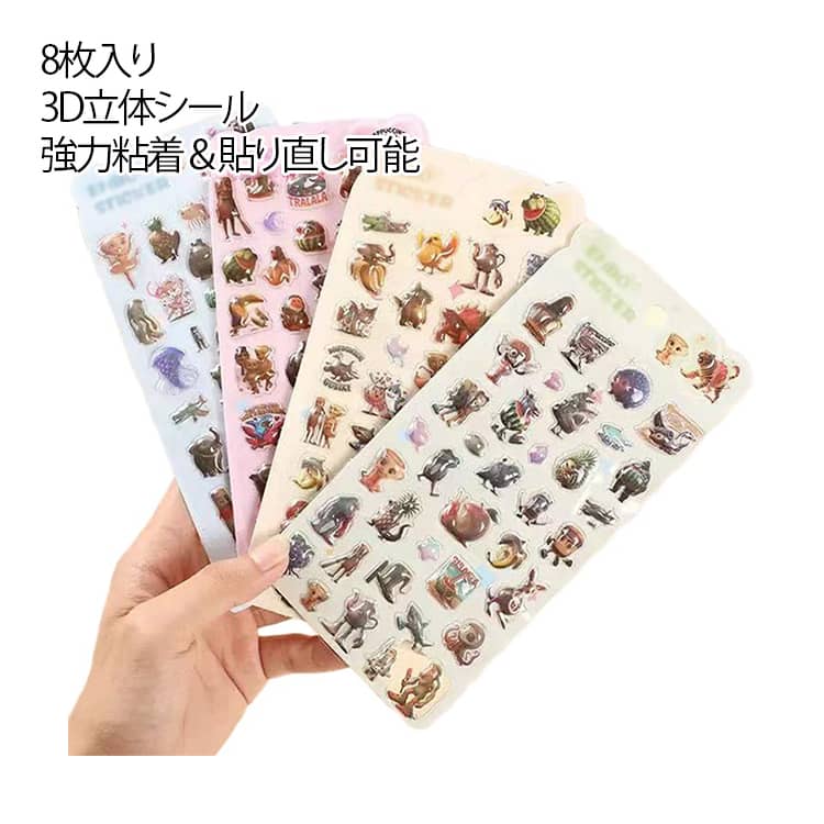 【8枚入り】イタリアンブレインロット 3D立体シール トゥントゥントゥンサフール いたりあんぶれいんろっと ブレインロット 8枚セット かわいい デコステッカー スマホ 手帳 DIY用 貼り付け簡単 手芸素材 プレゼント ギフト 人気