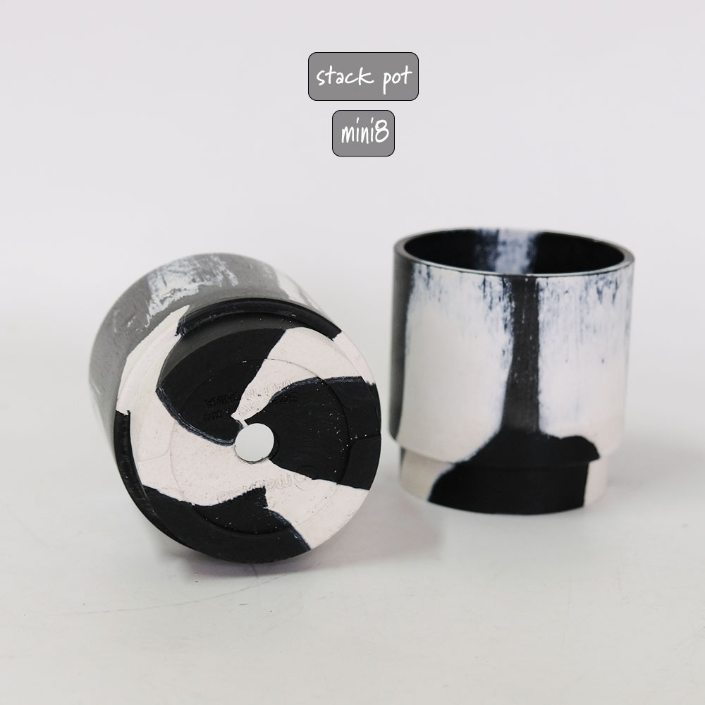 植木鉢 プラ鉢 おしゃれ 軽い スタックmini 8マーブル 頑丈 塊根植物 多肉 黒白プラスチック鉢 径8cm 高さ8cm プラスチック鉢