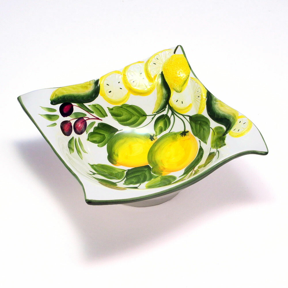 【アウトレット】 イタリア製 陶器 深皿 レモン柄 オリーブ柄 食器 鉢 スクエアボール イエロー 洋食器 テーブルウェア 南欧 黄色 europe_plum bre-1646-22le_b5
