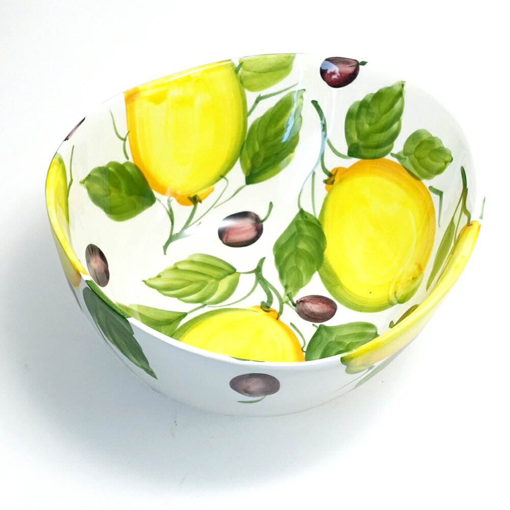 【アウトレット】 イタリア製 レモン柄 陶器製 サラダボウル 深鉢 カフェ ボウル 24cm ハンドメイド ハンドペイント テーブルウェア 食器 lemon 黄色 南欧食器 手作り 大鉢 皿 洋食器 europe_plum bre-1768-25le_b3