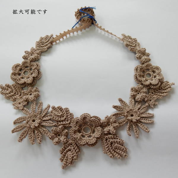 ミセスMさんの上品でレース編み・つけ衿ベージュカラー日本製の手編み作品レターパックライト便発送