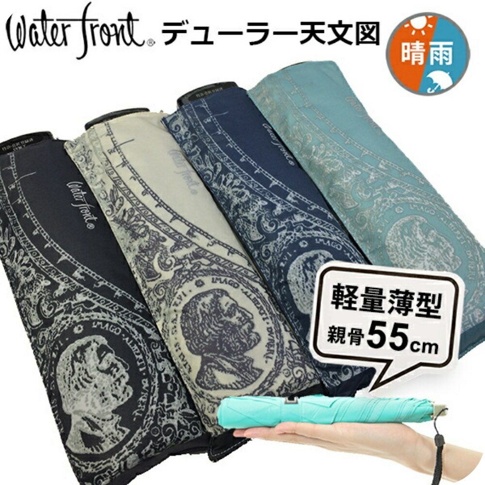 【最短日選択は365日出荷】折りたたみ傘 傘 晴雨兼用傘 超薄型 軽量 ウォーターフロント ポケフラット55 アートコレクション デューラー天文図 折り畳み傘 軽い レディース メンズ 学生 雨傘 日傘 親骨55cm UVカット ギフト プレゼント 傘専門店