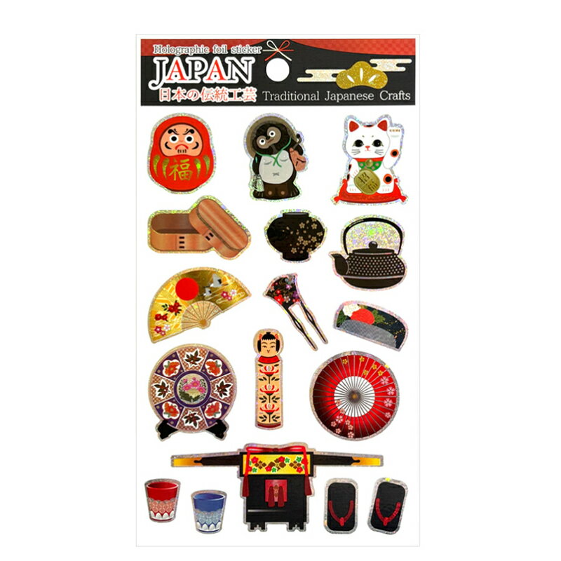 日本の伝統シリーズ 和柄ホログラムシール 「日本の伝統工芸」 日本モチーフ ステッカー 幅100×高さ180mm アート紙 スクラップデコ和風【メーカー公式/クローズピン】