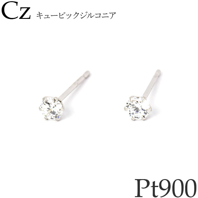 ピアス プラチナ900 3mm キュービックジルコニア メンズ レディース 金属アレルギー対応 スタッドピアス 一粒 4月誕生石 誕生日プレゼント Pt900 ペア 両耳用 日本製 [ma]