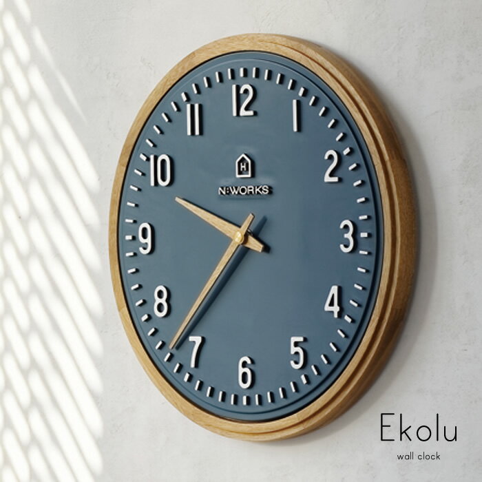 壁掛け時計 おしゃれ モダン ウォールクロック 壁掛け時計 壁掛け 時計 ekolu エコル ナチュラル ブラウン ブルー ネイビー 青 木製 木 30cm cl-3952 おしゃれ 北欧 インテリア 静か 静音 シンプル ウッド