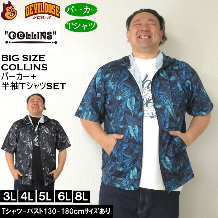 大きいサイズ メンズ セット販売 COLLINS メッシュヒョウ柄 半袖フルジップパーカー + 半袖Tシャツセット(メーカー取寄)コリンズ 3L 4L 5L 6L 8L 大きい サイズ キングサイズ ビッグサイズ デビルーズ インナー おしゃれ ブランド カットソー メンズファッション 春 夏 服