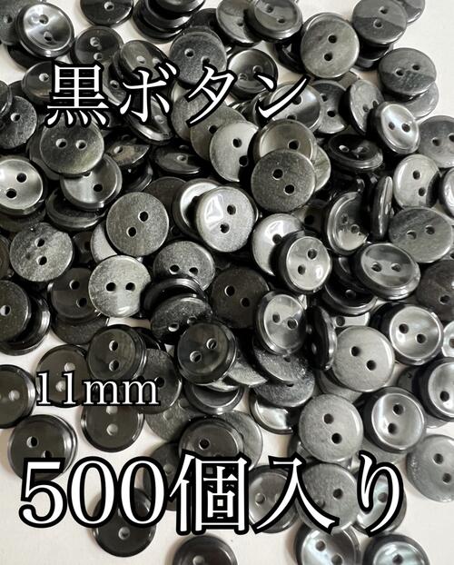 黒ボタン 11mm 2つ穴 シャツボタン 黒色ボタン 500個入り
