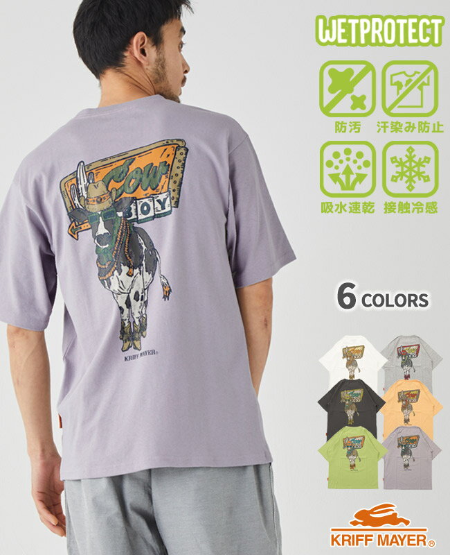 【ブランド直営】 ウェットプロテクト T 牛(メンズ ユニセックス 半袖 Tシャツ バックプリント 汗染み防止 撥水防汚 クルーネック アニマル 掠れプリント カジュアル 涼しい アウトドア 男女兼用 アメカジ お揃い 夏)KRIFF MAYERクリフメイヤー