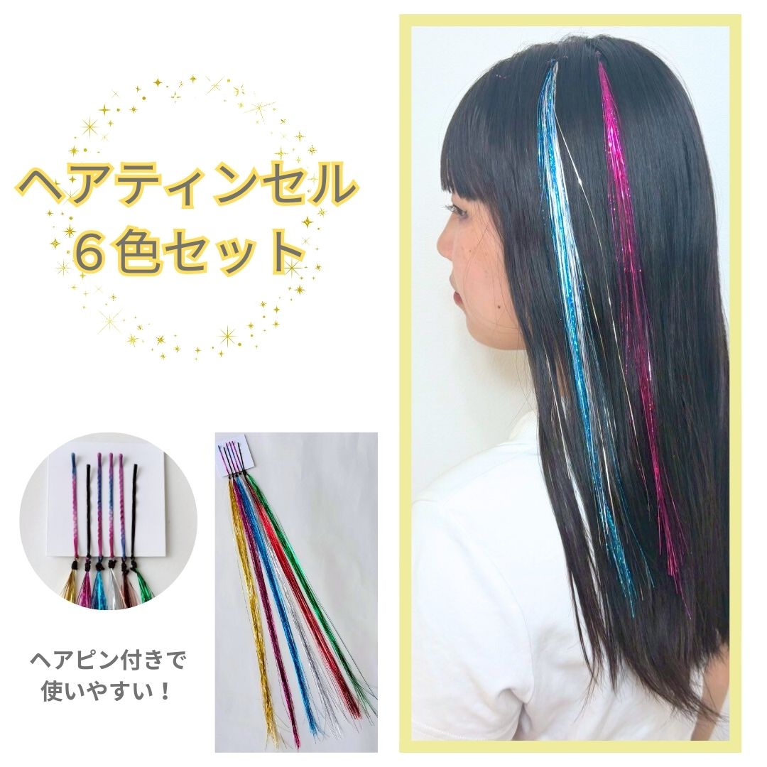 ヘアティンセル 6色セット 推し活 キラキラ ラメ ヘアピン ヘアアレンジ エクステ ダンス コンサート パーティ