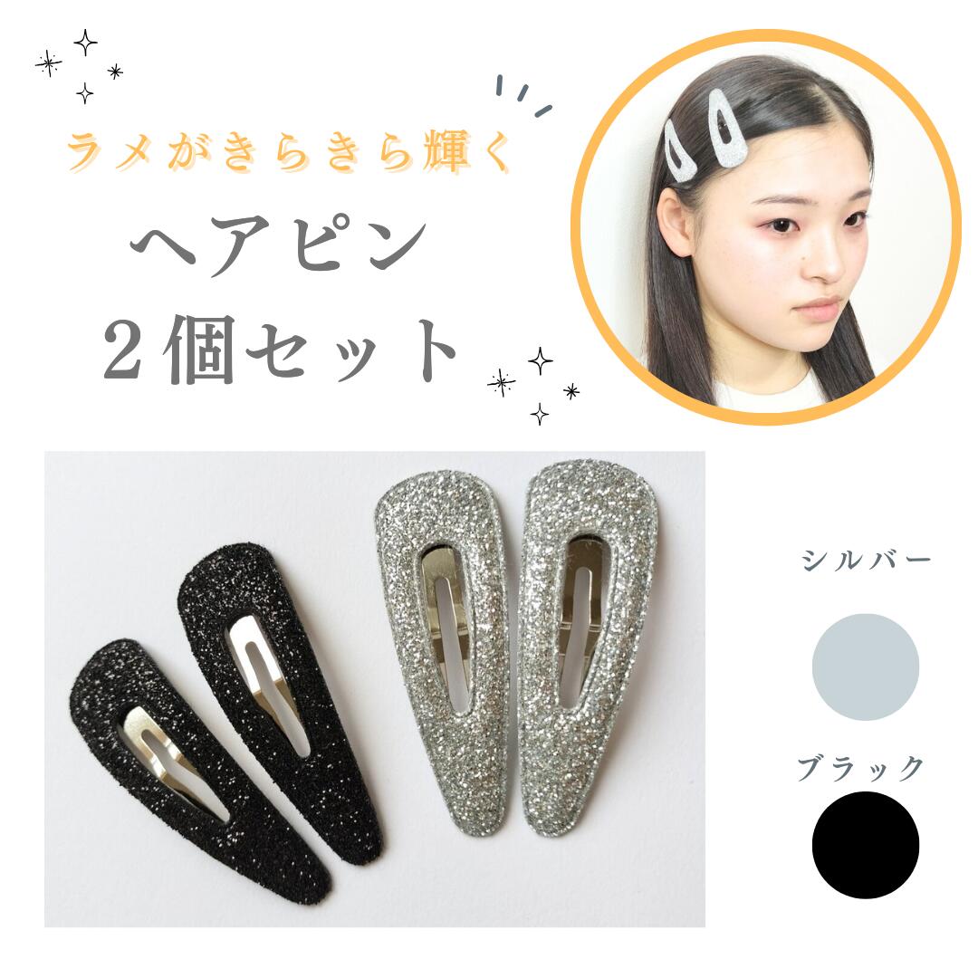 ヘアピン 2個セット ラメ シルバー ブラック パッチンピン スリーピン シンプル おしゃれ 大人 カジュアル