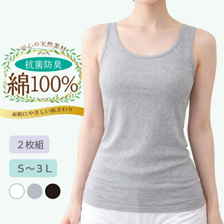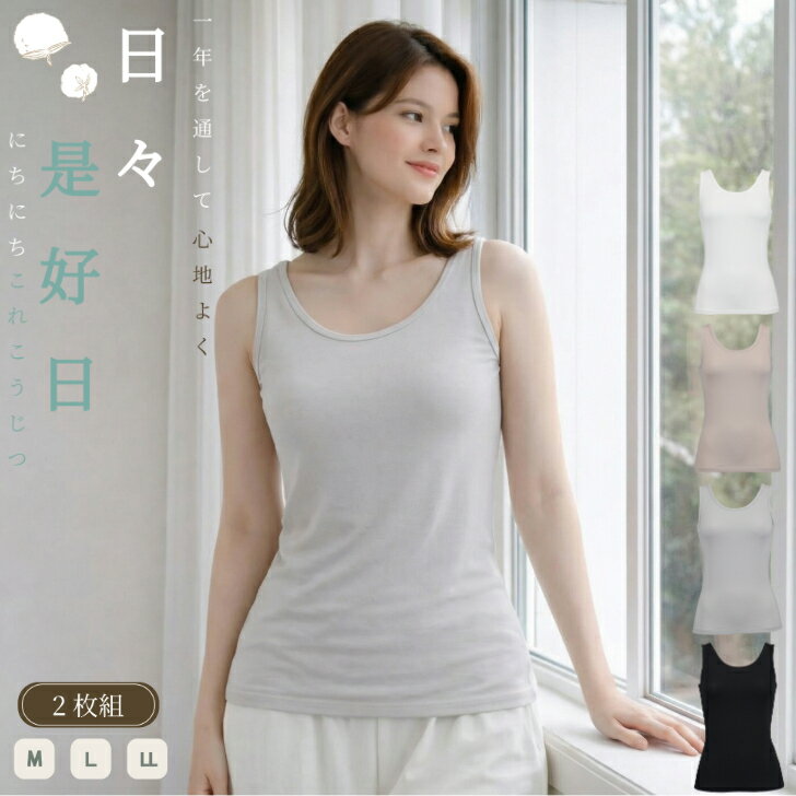【2枚組】 タンクトップ レディース 綿混 柔らか 超長綿 無地 カジュアル 通年対応 ストレッチ 婦人 肌着 下着 ベージュ/オフホワイト/グレー/クロ M-LL 16173