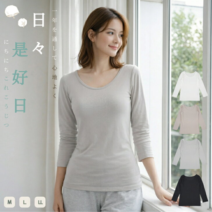 8分袖インナー レディース 綿混 柔らか 超長綿 無地 カジュアル 通年対応 ストレッチ 婦人 インナー 肌着 下着 長袖 ベージュ/オフホワイト/グレー/クロ M-LL 16171