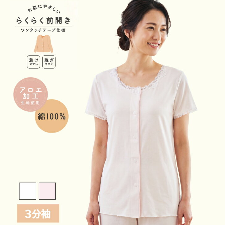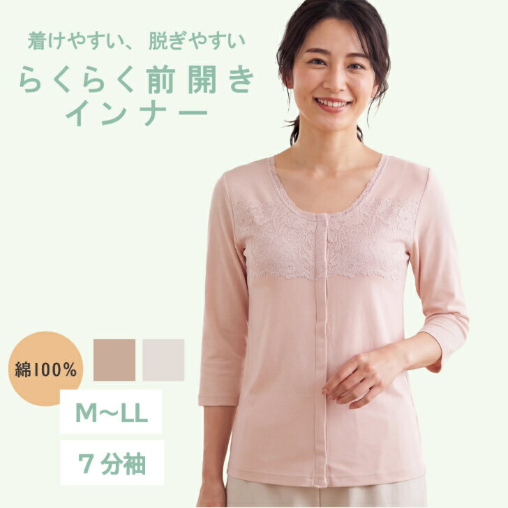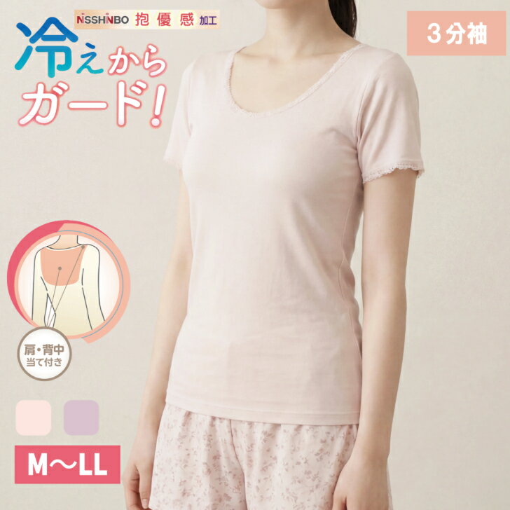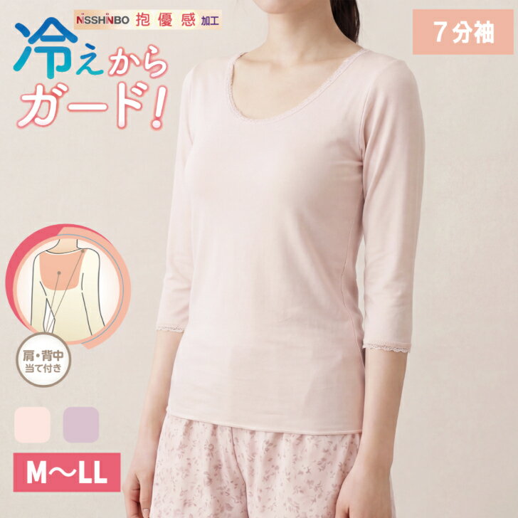 日本製 綿100% 7分袖 レディース 婦人 肌着 インナー 肩当て付 背中当て付 冷え対策 冷房対策 シニア 高齢 ピーチ/モカ M-LL 14454