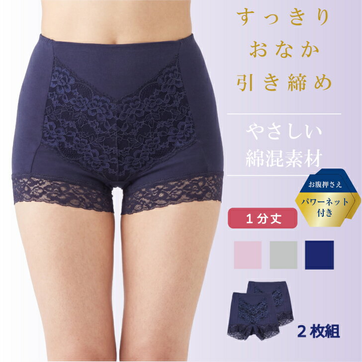 【2枚組】 お腹押さえ パワーネット 1分丈ショーツ レディース 綿混 お腹 引き締め すっきり ストレッチ 1分丈 下着 パンツ ピンク/チャコールグレー/ネイビーブルー M-LL 14001