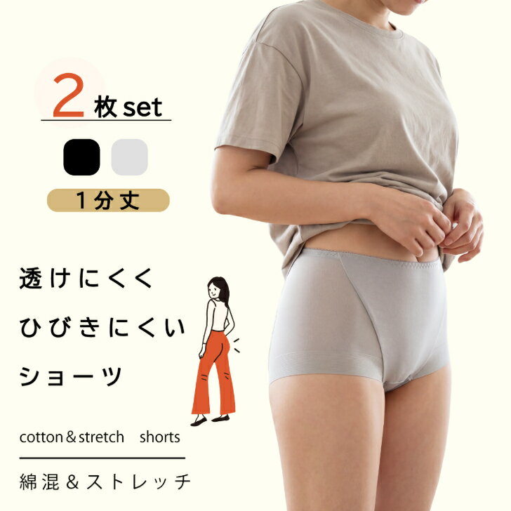 ★春のセール 20%OFF 5/6まで★ 【2枚セット】 ぺチパンツ 1分丈 レディース さらさら 透けない フロントガード Yライン防止 1分丈パンツ ショート丈 短い ペチコート アンダーウェア 裏地 ストレッチ オールシーズン ベージュ/クロ M-L 14219