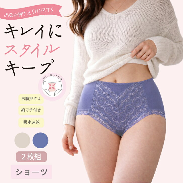 ★春のセール 20%OFF 5/6まで★ 【2枚組】 お腹押さえ ショーツ レディース パワーネット レース お腹すっきり 下腹 引き締め 女性 下着 吸水速乾 ストレッチ ベージュ/コン M-LL 18106